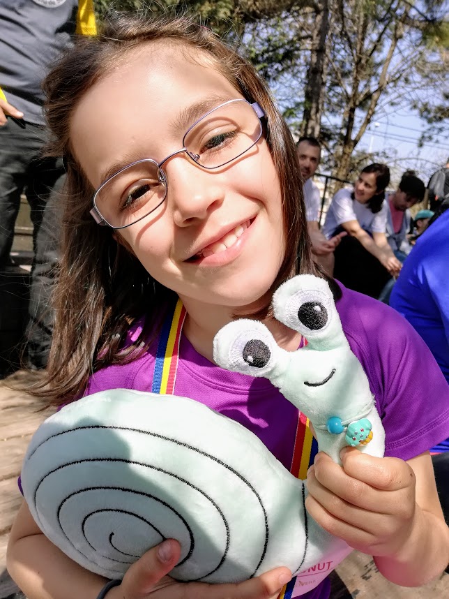 Natalia a alergat la categoria 6-8 ani, iar Vlăduţ la 9-11 ani, motiv pentru care am putut să fac echipă cu amândoi. Am fost şi anul trecut, în aceeaşi formulă, când Natalia a câştigat locul 1, pe care l-a apărat cu succes şi anul acesta, iar Vlăduţ locul 5.