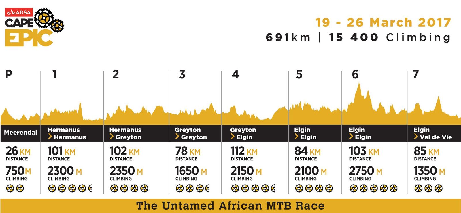 Absa Cape Epic a avut loc în perioada 19-26 martie 2017 în Africa de Sud şi este o competiţie comparată adesea cu Turul Franţei, cea mai cunoscută competiţie de ciclism din lume. La fel ca în Le Tour, şi la Absa Cape Epic vin cei mai buni dintre cei mai buni, iar etapele sunt “criminale”.